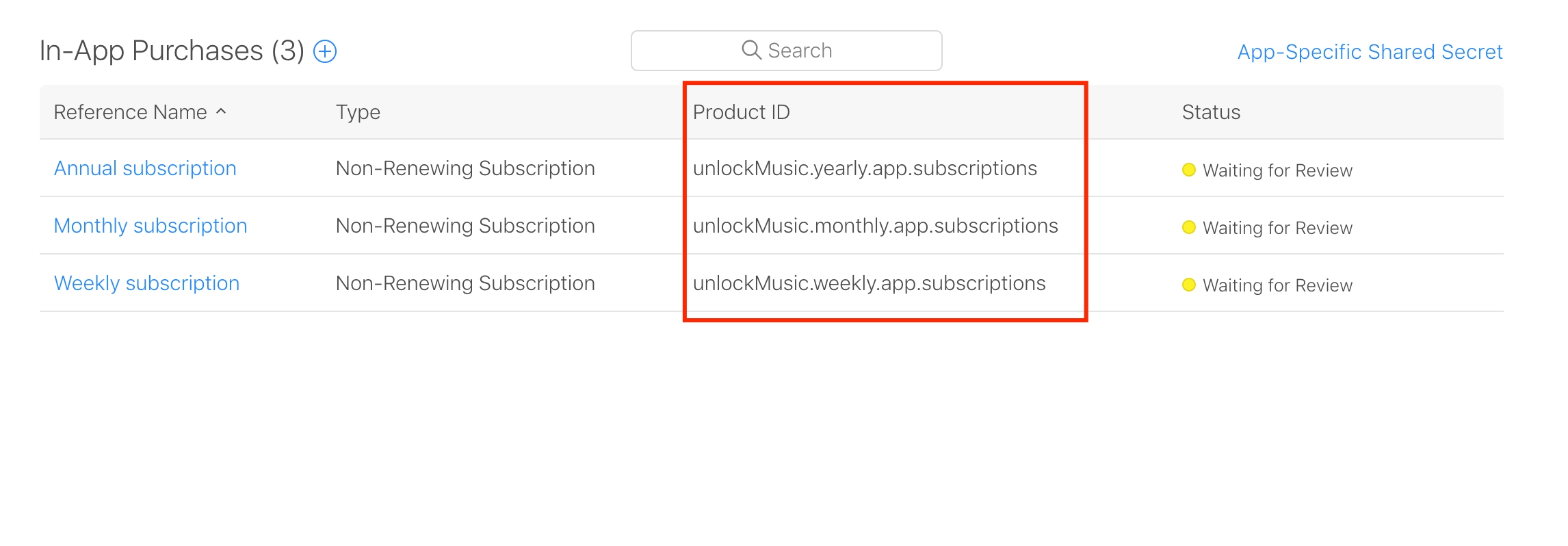 It's important to link your SKUs to the AppFlow.ai Dashboard. To find SKUs go to your Apple Store connect and copy Product id of the purchase