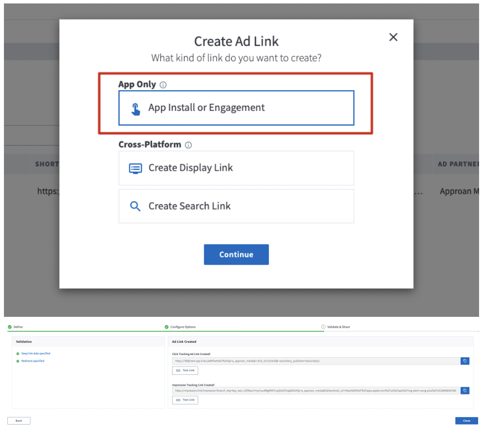 We chose the App Only type Ad Link in Branch.