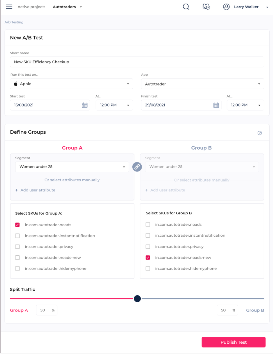 We’ve created a more complex system to allow you to test with different segments and different SKUs.