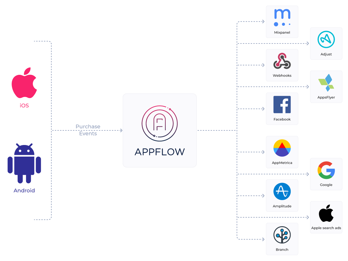 For now, Appflow.ai is providing you with the ability to send Subscription events to any of your integration to have everything in one place.