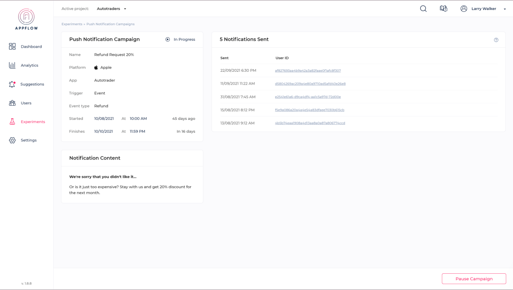 Before you create Push Notifications in Appflow\.ai Experiments, please, make sure you've completed the Push Notification Configuration. If not, you could refer to these two docs: